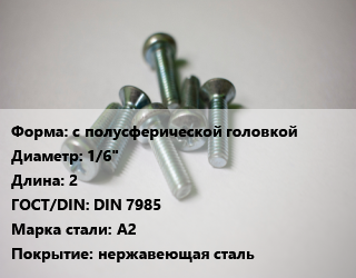 Винт с полусферической головкой 1/6"х2 DIN 7985 Сталь: A2 нержавеющая сталь